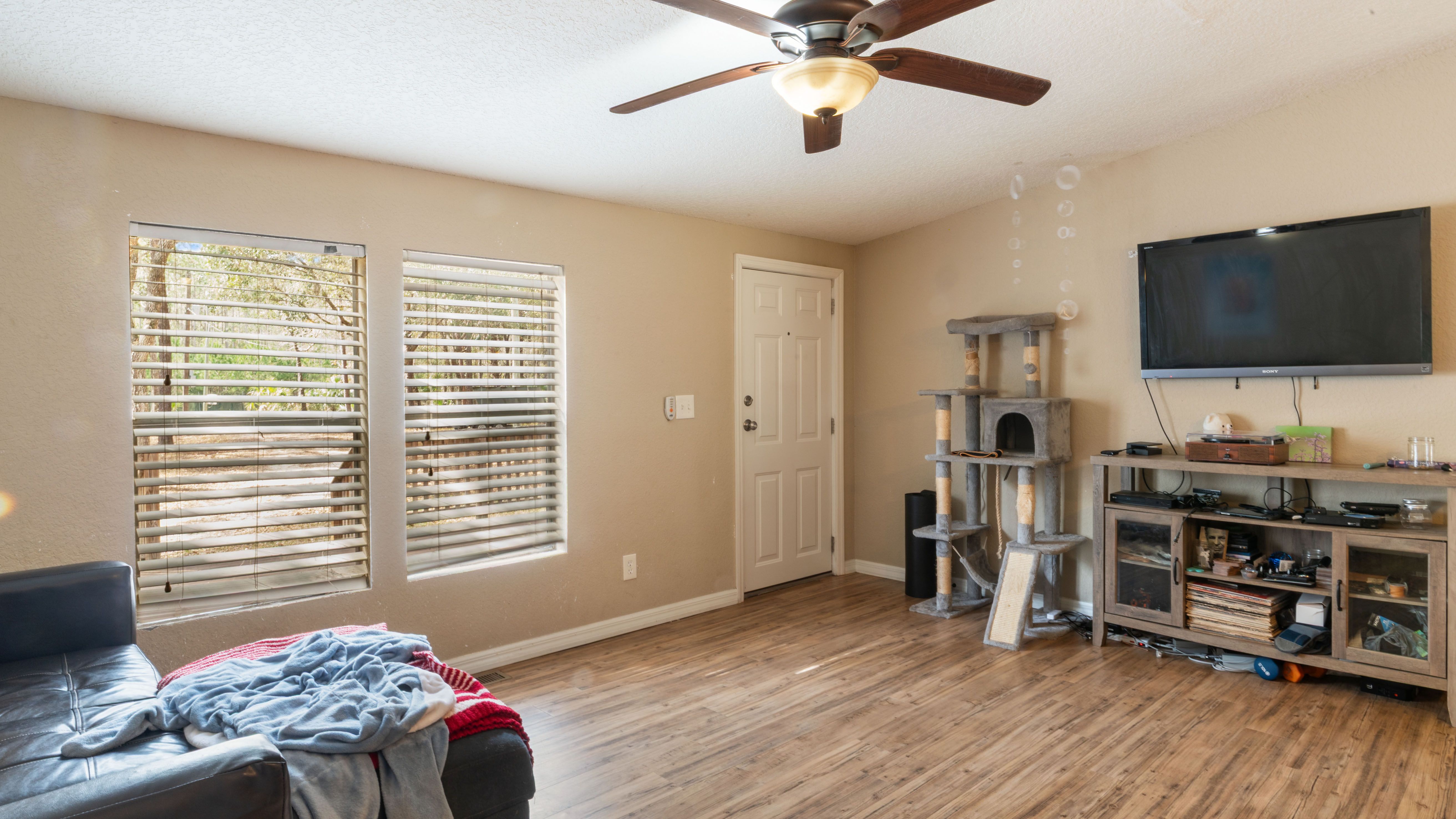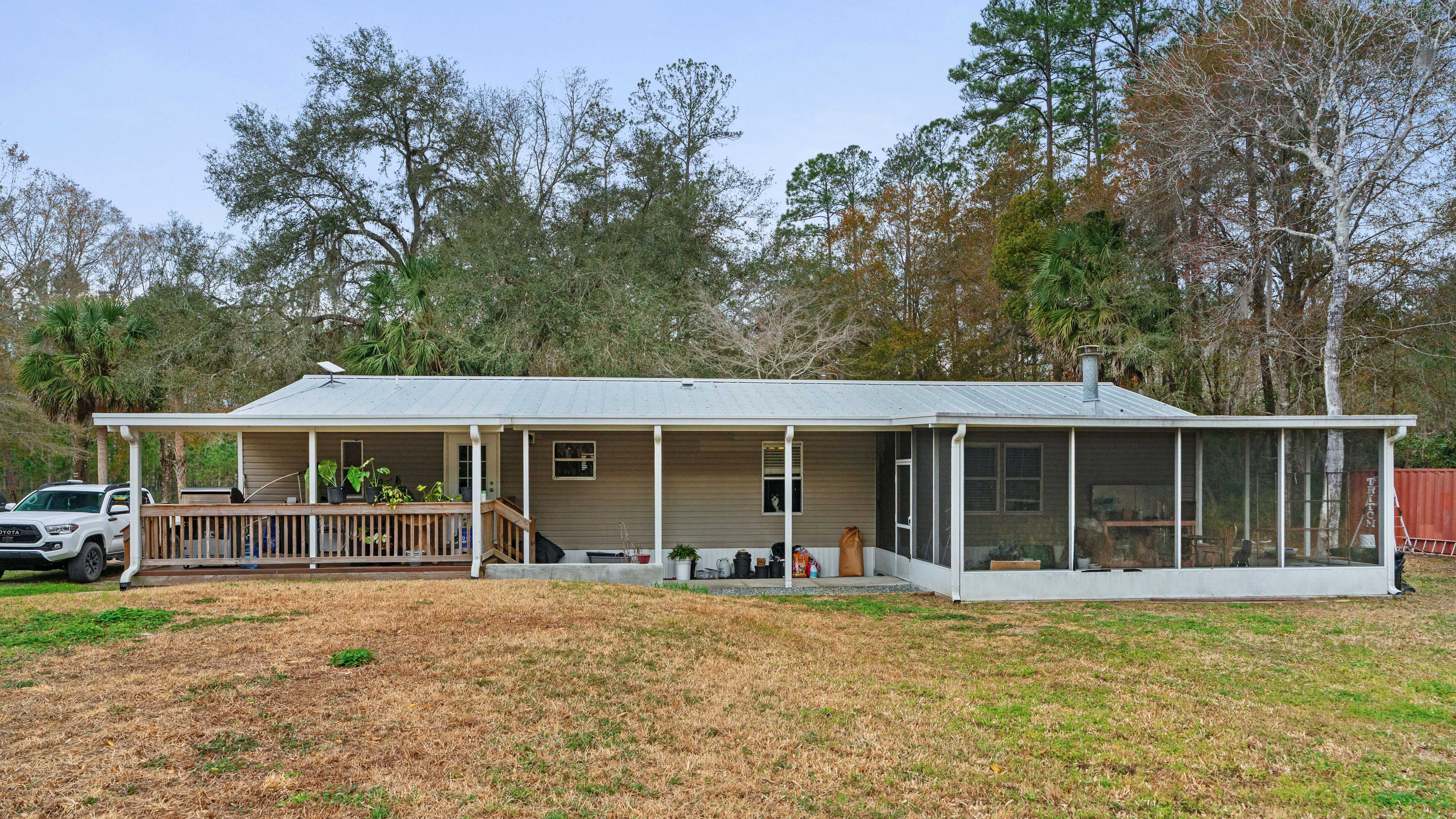 Inside, you’ll find an open-concept layout filled with natural light, ceiling fans throughout, and a cozy fireplace that adds character and charm. The property also features a screened porch and a wood deck—perfect for enjoying Florida’s outdoor lifestyle once refreshed. The acreage opens the door to multiple possibilities: expansion, storage for equipment, tenant appeal, or simply added value in a market where land is increasingly desirable.