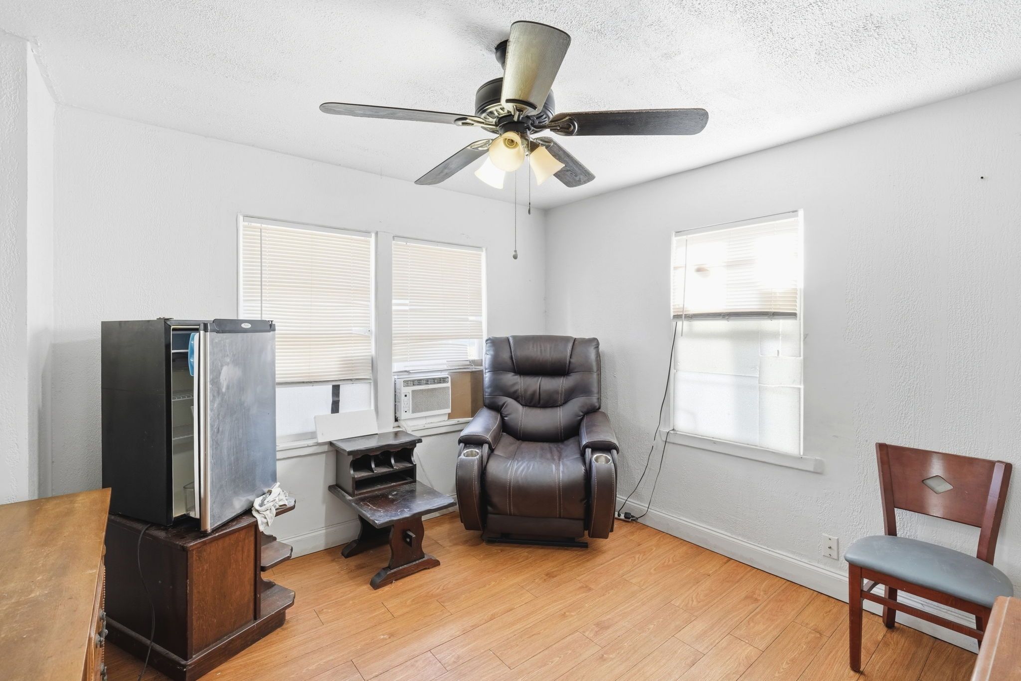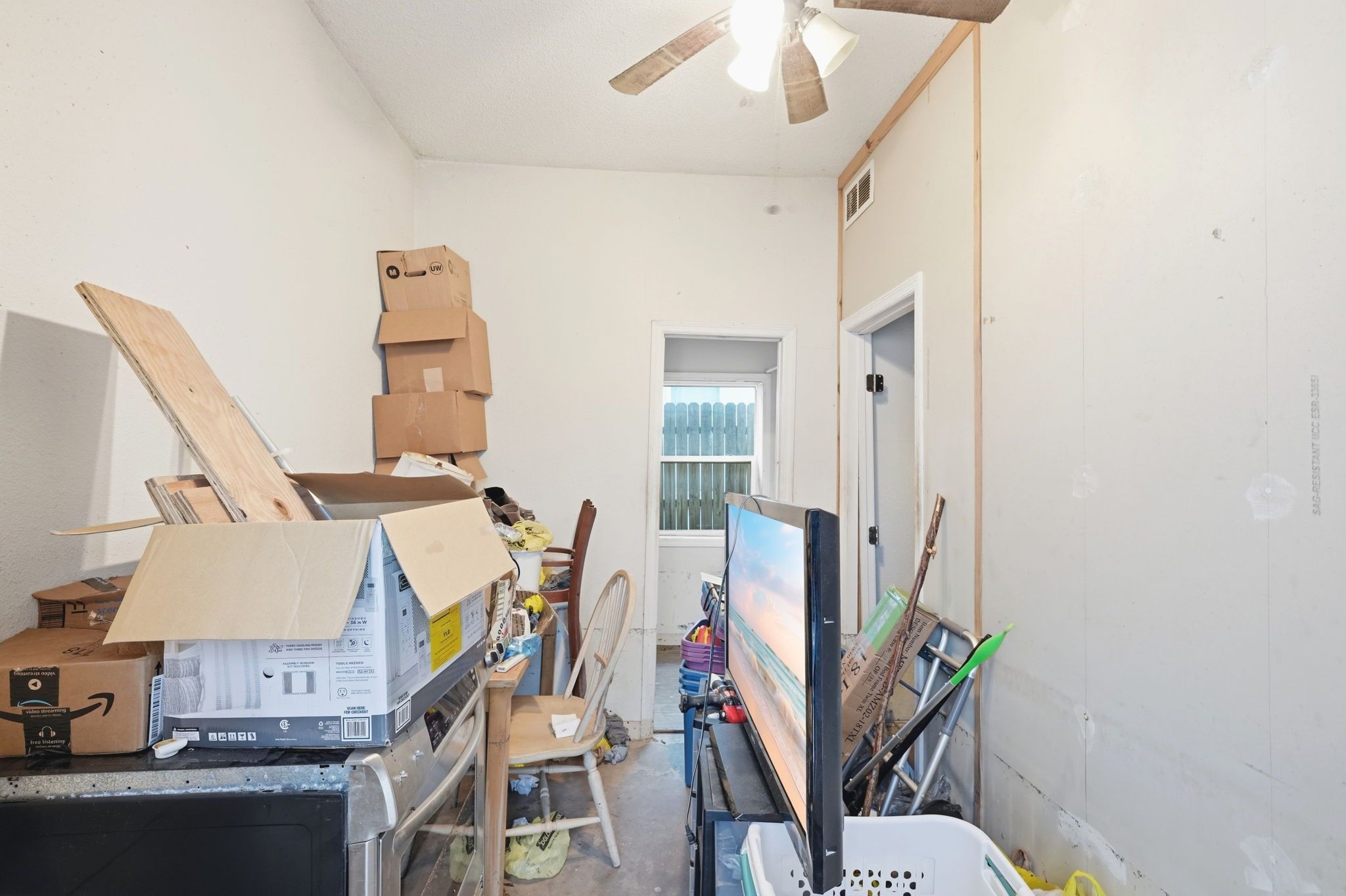 This 2-beds, 1-baths single-family home features a comfortable layout filled with natural light, ceiling fans throughout, solid concrete block construction, and a newer roof for added peace of mind. The detached garage has been converted and offers flexible space with a history of generating approx. $1,200 per month in rental income. While not currently leased, it presents strong potential for future rental use, guest quarters, or additional living space. Ideal for buyers seeking versatility and long-term value.